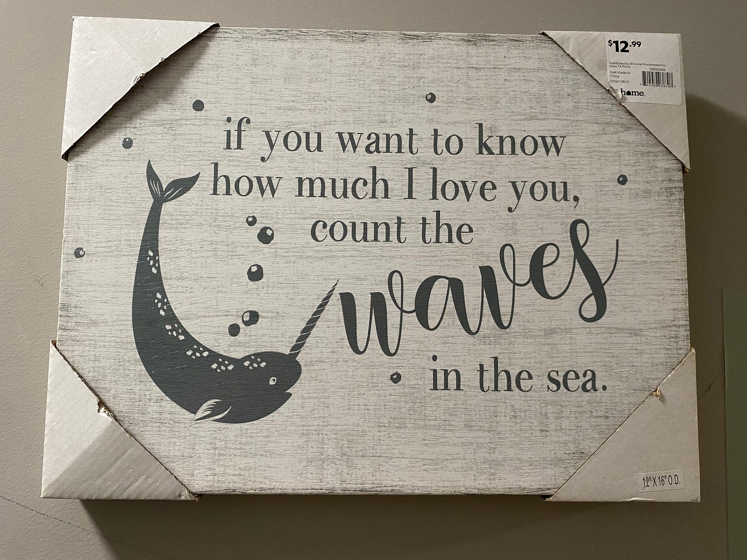 It reads, If you want to know how much I love you, count the waves in the sea.